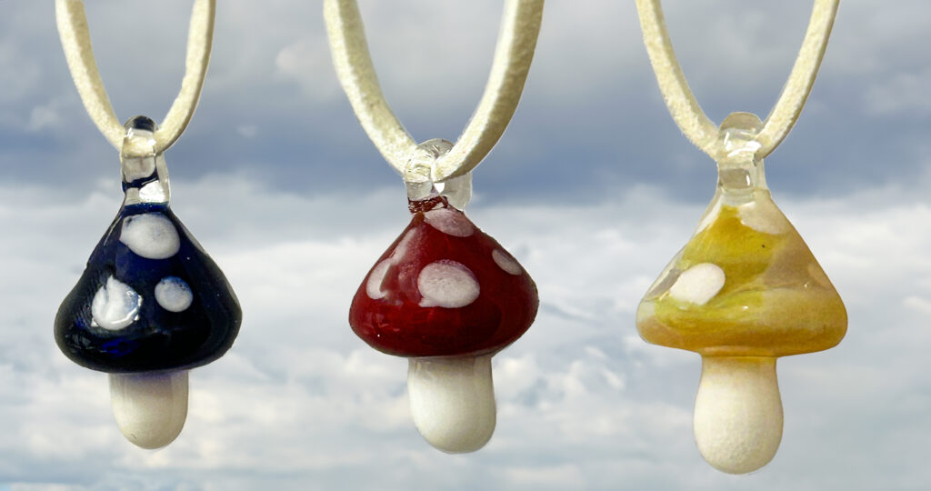 In this flameworking class, you will make a colorful mushroom pendant! This class is for all levels and no prior experience is necessary. Ages 12 and older. Approximately 1 hour. $35 per person. Reservations are required by phone (513-751-3292) or email (neusoleglassworks@hotmail.com) or in person. Payment is required at the time of scheduling. Available for pick-up in approx. 7 days.