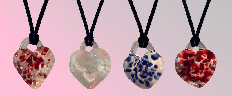 Fused Heart Pendant Class! This class is for all levels, and no prior experience is necessary. Ages 5 and older. Class lasts up to 30 minutes. One pendant for $30 per person. Two pendants for $45. Reservations required by phone (513-751-3292), email neusoleglassworks@hotmail.com, or in person. Payment is required at the time of scheduling. Available for pick-up in approx. 7 days. Approx. 1.5” tall 1.5” wide. Different colors available. Now through the end of February.