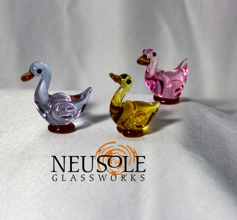 DUCK! In this flameworking class you will make an adorable glass duck! The figure is approx: 1.25” tall. This class is for all levels and no prior experience is necessary. Ages 12 and older. Approximately 1 hour. $35 per person. Reservations required by phone 513-751-3292) or email (neusoleglassworks@hotmail.com) or in person. Payment required at time of scheduling. Available for pick-up in approx. 7 days.