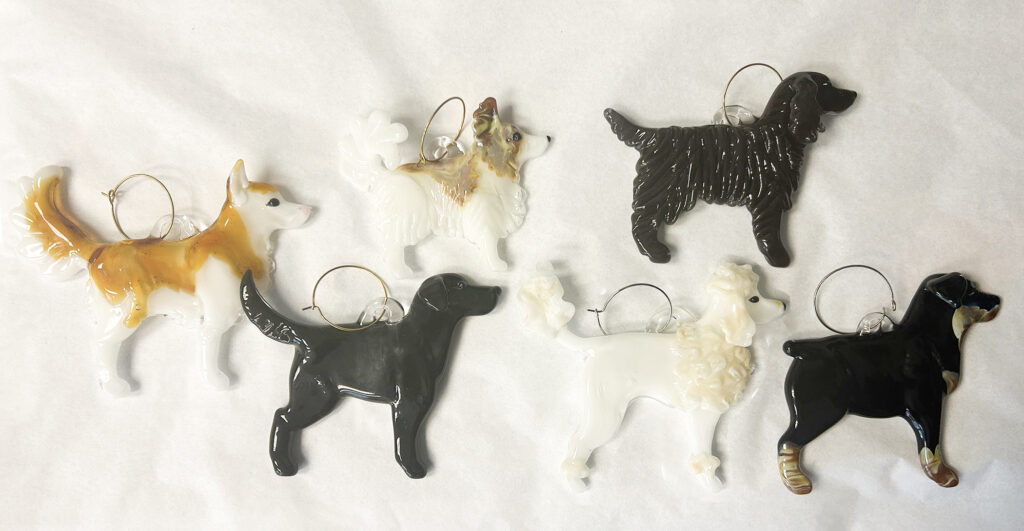 It’s that time of year again, Dog Days of Summer. Your glass dog ornament is created by us, in flameworking. Just email us clear pictures of your dog from multiple angles if possible. (neusoleglassworks@hotmail.com) and we will get it as close as we can. Posted are some of the dogs we have created as examples. This is the perfect holiday gift, or even an “I’m thinking of you” gift. The ornaments are approximately 3.25” wide and 2.5” tall. They are $45 each, and payment is due at the time of order. If you have a different animal, send the pictures and we can let you know if we can do it. Turnaround time is approximately 2 weeks. If you have any questions call 513-751-3292