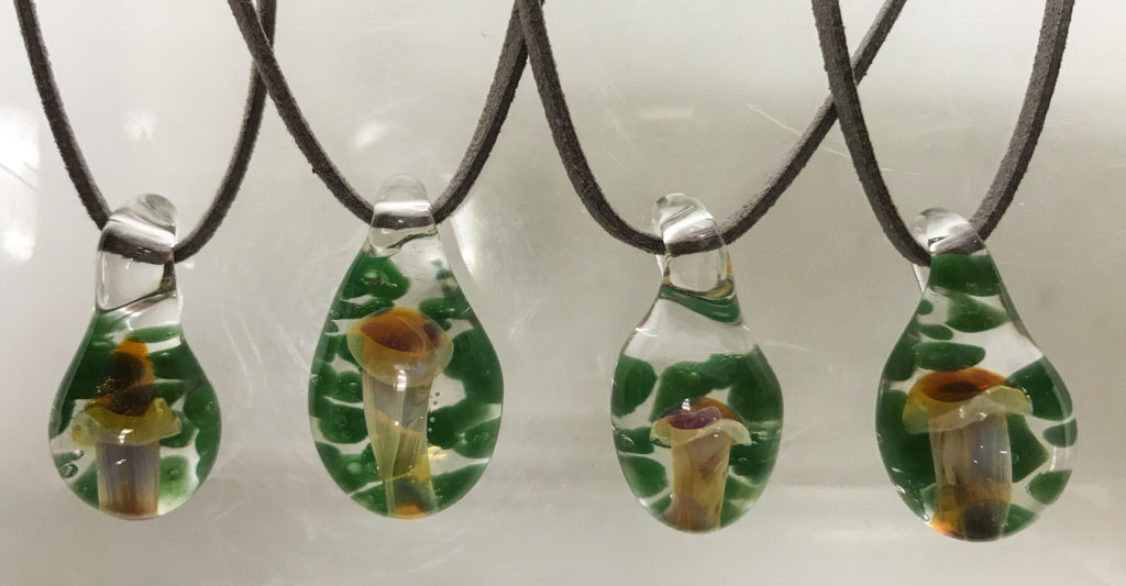 You will love this flameworked glass pendant/charm. Class lasts up to one hour. $30 per Mushroom.Ages 12 and over. No experience needed. Approx .75’’ width 1.25’’ height. Call 513-751-3292, or email neusoleglassworks@hotmail.com. Payment due upon scheduling. Pendants available for pickup in approximately one week.