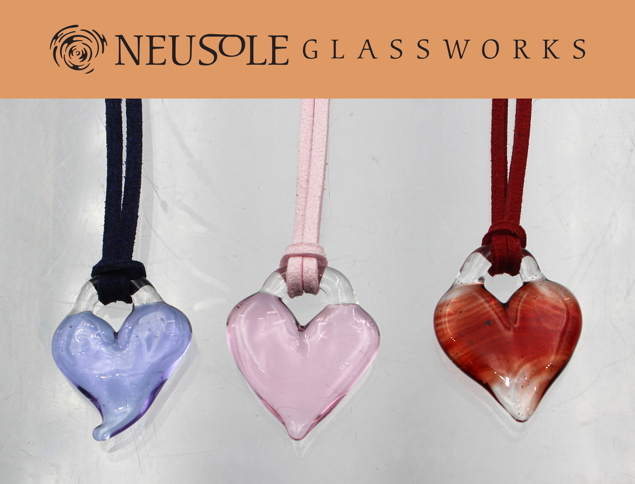 In this flameworking class you will make a heart pendant! This class is for all levels and no prior experience is necessary. Ages 12 and older. Approximately 1 hour. $35 per person. Reservations required by phone (513-751-3292) or email (neusoleglassworks@hotmail.com) or in person. Payment required at time of scheduling. Available for pick-up in approx. 7 days.