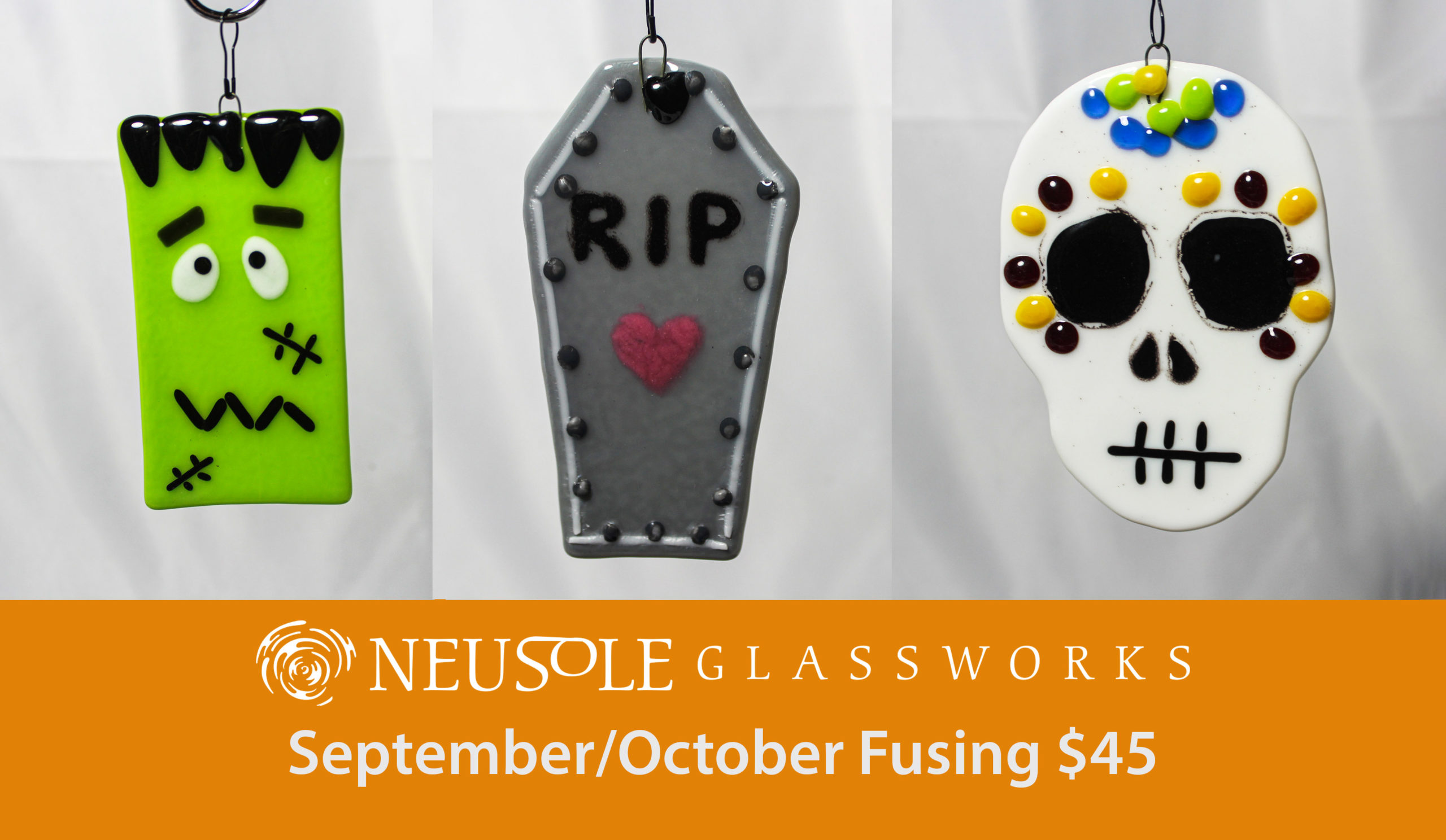 Make 3 fused Halloween ornaments approx. 4″ tall. Ages 5 and older. Will take approximately 1 hour. Call or email for availability. 513-751-3292 or neusoleglassworks@hotmail.com. $45 for three. Payment due upon scheduling. Items available for pick-up in approximately 1 week. Mask required.