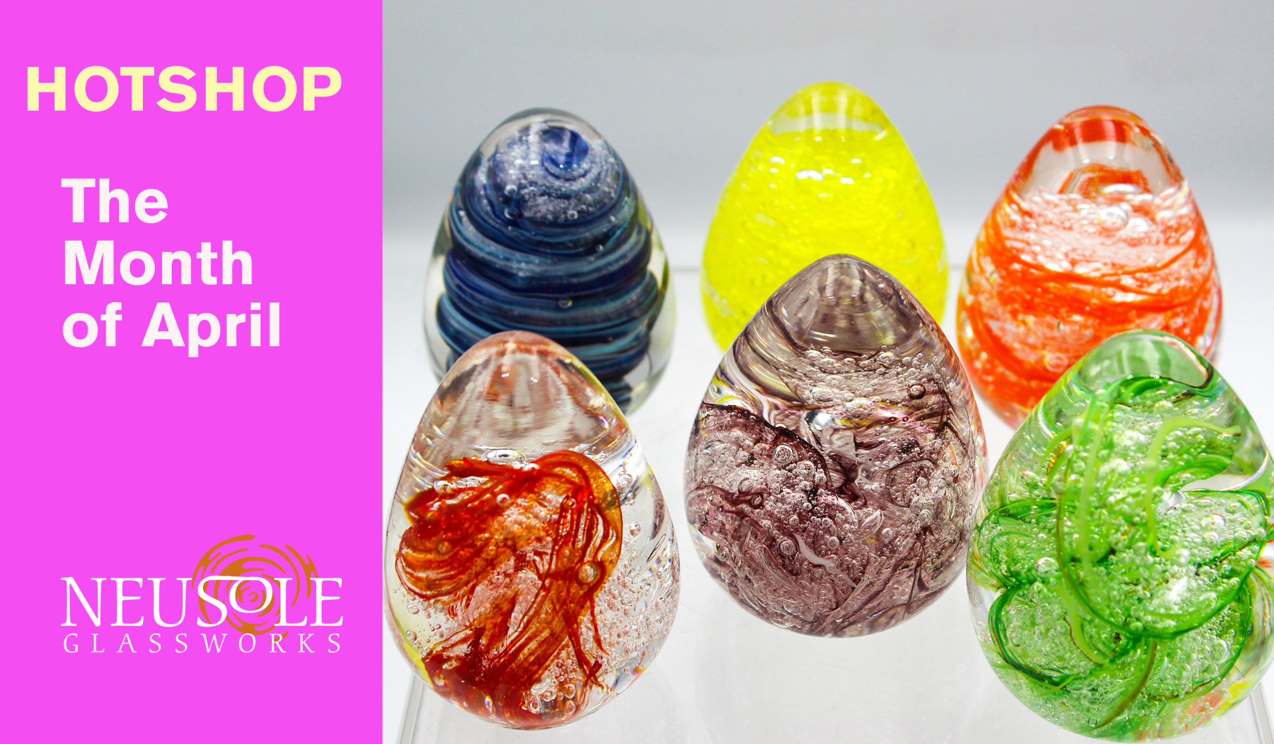 With the help of our professional glassblowers, you can sculpt hot molten glass into egg shaped paperweights! 5 years or older. $50 per person. Reservations required by phone (513-751-3292) or email (neusoleglassworks@hotmail.com). Payment is due upon scheduling. You will schedule up to 30 minute slots per person. Items will be available to be picked up approx. one week later. Color limited to availability.