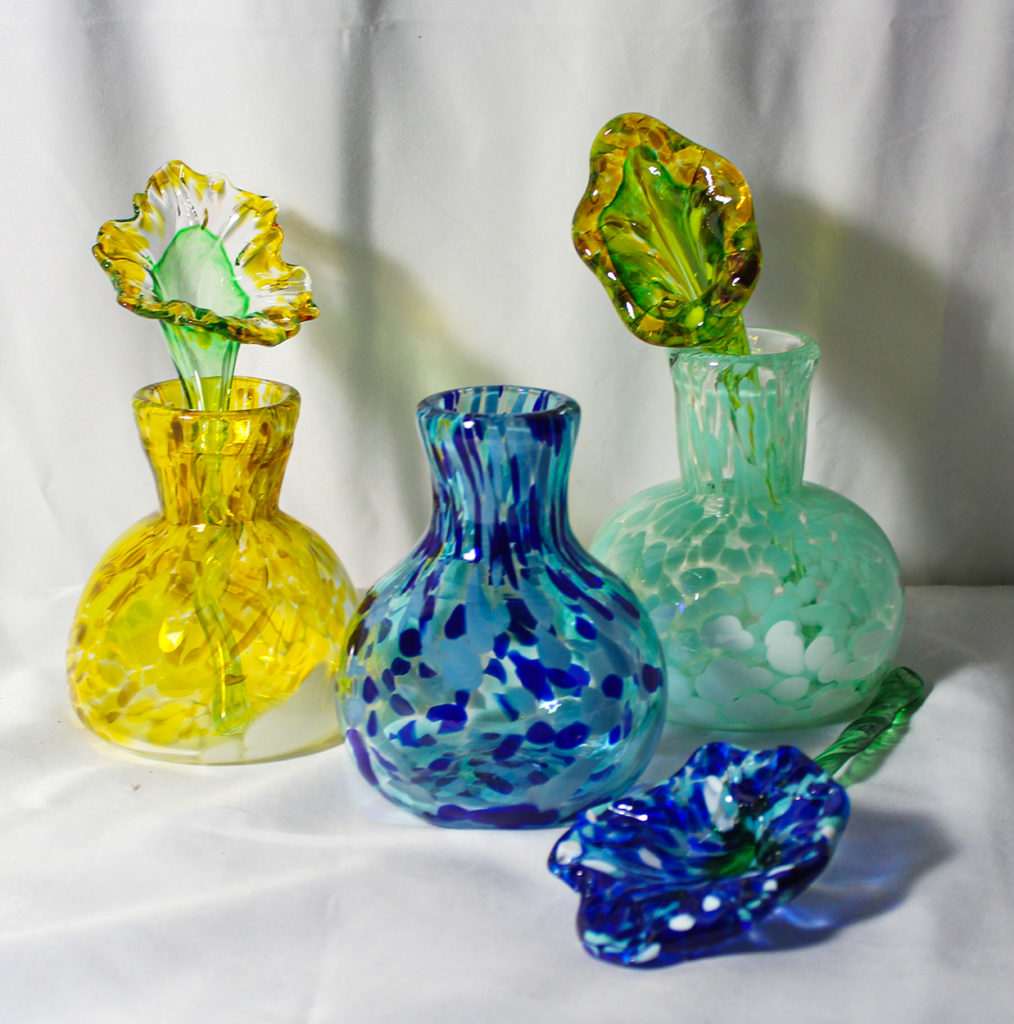 Celebrate Mom’s special day now through the month of May by spending it in our hotshop making a vase and sculpted flower. With the help of our professional glassblowers, you can create one vase and sculpt one flower from hot molten glass. Vase: approx. 3’’ wide by 4’’ tall Flowers: approx. 4’’ wide x 5’’ tall, artist styles may vary. Call for reservations 513-751-3292 or email neusoleglassworks@hotmail.com to schedule. Up to 45 mins. Must be a mature 10 years or older, $75 per person. Ready for pick up in approx. 7 days. Payment due upon scheduling.