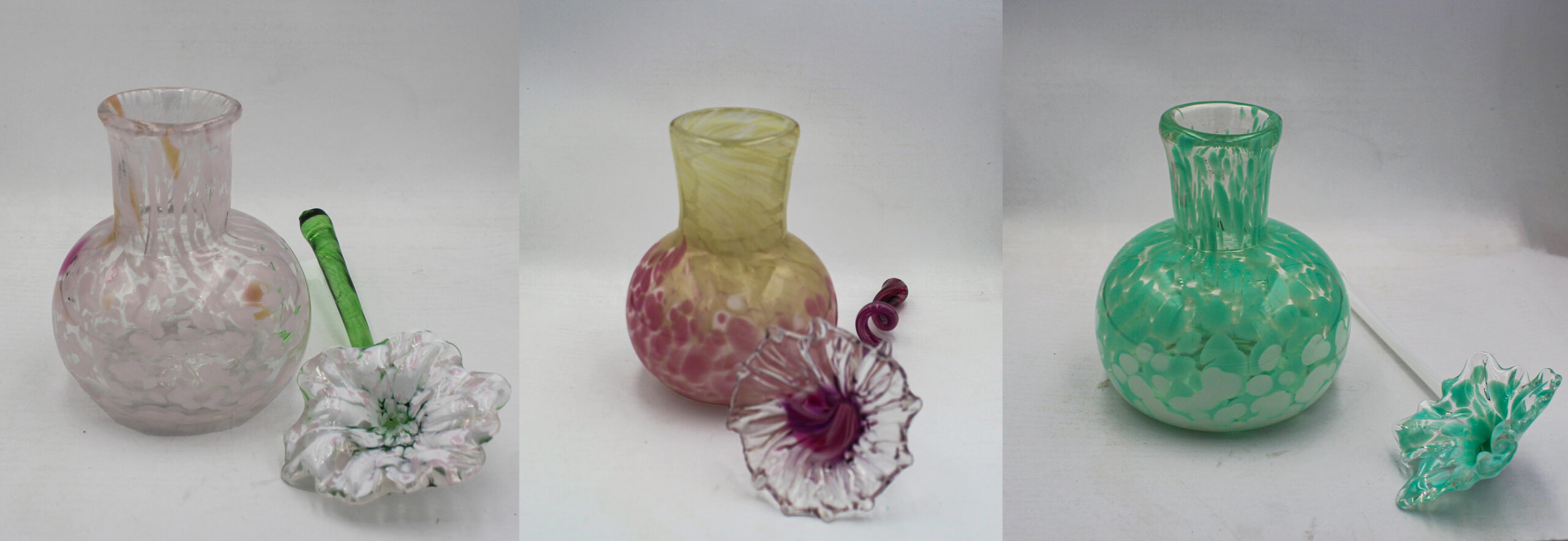 Celebrate Mom’s special day now through the entire month of May by spending it in our hotshop making vases with pretty flowers. With the help of our professional glassblowers, you can blow one vase and sculpt one flower from hot molten glass. Vase: approx 3’’ wide by 4’’ tall Flowers: approx 4’’ wide x 5’’ tall, artist styles may vary. Call for reservations at 513-751-3292 or email neusoleglassworks@hotmail.com to schedule. Must be a mature 10 years or older, $75 per person. Ready for pick up in approx 7 days. Must pay at the time of scheduling.