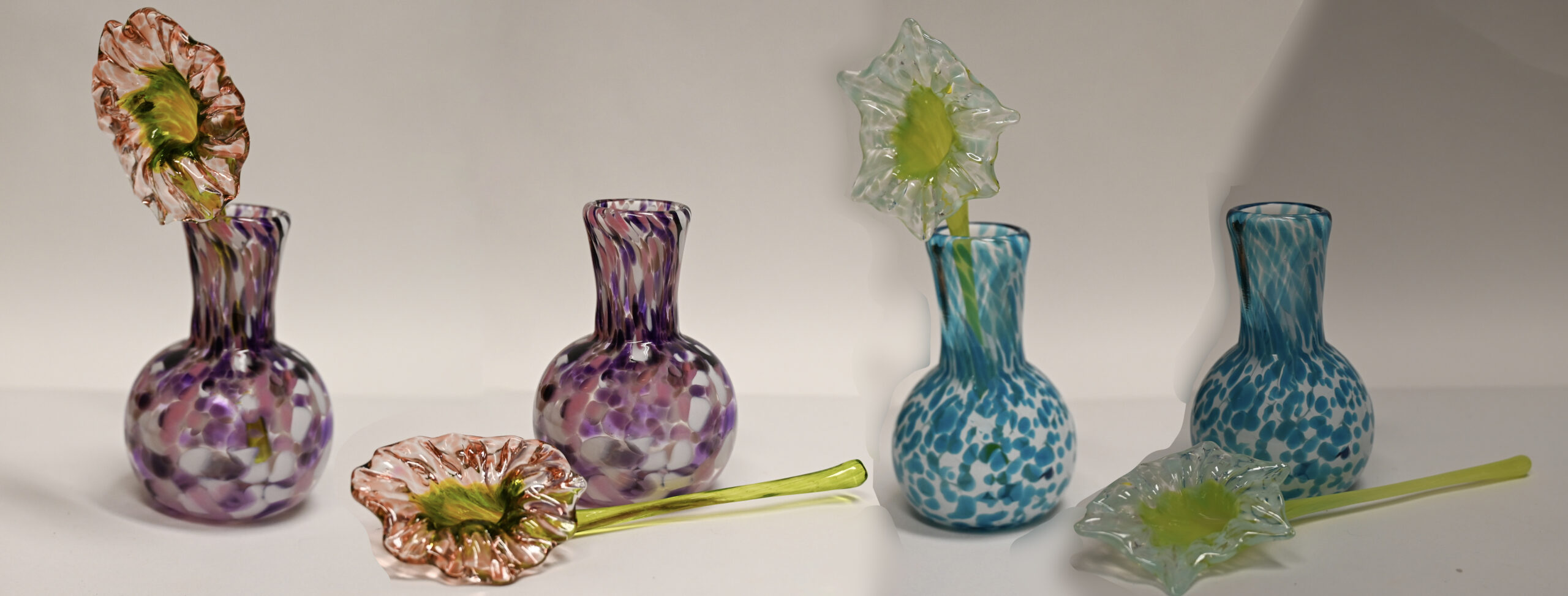 Celebrate Mom’s special day now through the entire month of May by spending it in our hotshop making vases with pretty flowers. With the help of our professional glassblowers, you can blow one vase and sculpt one flower from hot molten glass. Vase: approximately 3″ wide by 4″ tall. Flowers: approx 4’’ wide x 5’’ tall, artist styles may vary. Call for reservations 513-751-3292 or email neusoleglassworks@hotmail.com to schedule. Must be a mature 10 years or older, $75 per person. Ready for pick up in approx 7 days. Must pay at the time of scheduling.