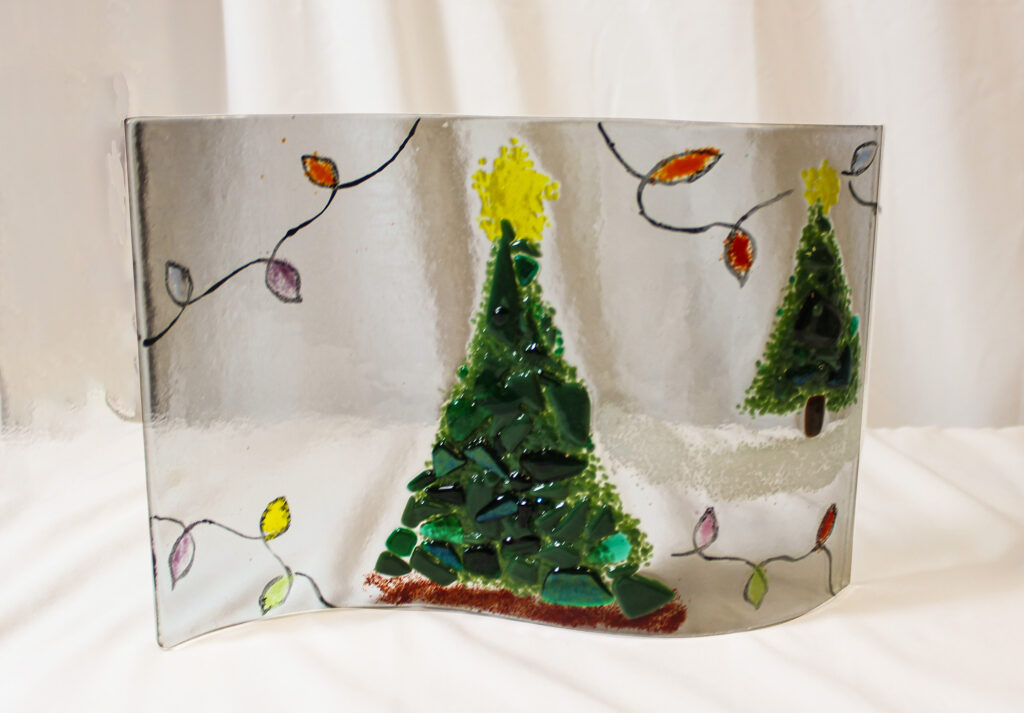Make a Holiday fused s-curve glass art for $75. Approximately 8” tall by 11” wide. Ages 5 and older. Scheduled in approx: 60-minute increments. Larger groups may require more time. Call or email for availability. 513-751-3292 or neusoleglassworks@hotmail.com. Payment is due upon scheduling. Item is available for pick-up in approximately 3 weeks or less.