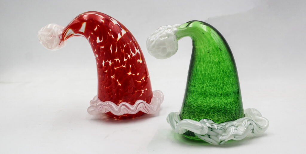 From now until the end of December, make your own glass Santa Hat Paperweight in our HotShop. With the help of our professional glassblowers, you can make one Santa Hat from hot molten glass. Approximate size 4” tall. Artist styles may vary. Call for reservations at 513-751-3292 or email neusoleglassworks@hotmail.com to schedule. Must be 12 years or older, $55 per person. Ready for pick up in approximately: 7 days. Must pay at the time of scheduling.